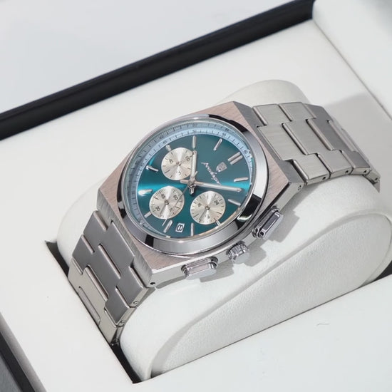 - Fonctionnalité : Le cadran structuré avec des compteurs fonctionnels offre des fonctions de chronographe (Stop)précises et un affichage pratique de la date.